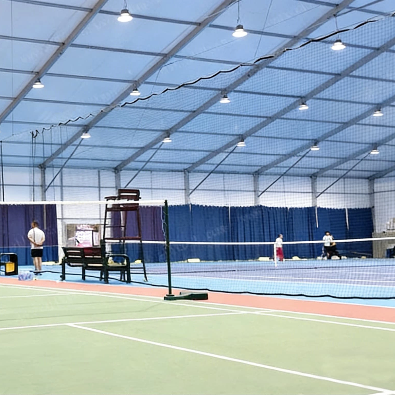 يستخدم الهيكل مساحة داخلية واسعة - بدون أعمدة مركزية - مما يسمح بملاعب كرة الريشة الفردية أو المتعددة بحجم BWF. يدعم الارتفاع الجانبي المرتفع وخلوص السقف اللعب الاحترافي وتركيبات الإضاءة واستقرار الريشة. يوفر الإطار المصنوع من الألومنيوم والغشاء PVC متانة طويلة الأمد في المناخات الرطبة والاستوائية.