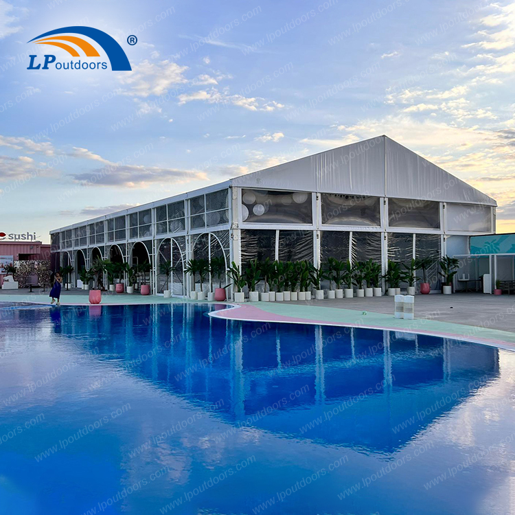 يوفر خيمة كبيرة بعرض 20 × 40 مترًا ، على ارتفاع جانبي يبلغ 6 أمتار ، لعملائنا مكانًا للنشاط بواسطة حمام سباحة. مع بنية الألمنيوم عالية القوة وتصميم النافذة الجانبية الأنيقة ، تعد هذه الخيمة مكانًا مثاليًا لحفلات الزفاف والاحتفالات والأحداث الرياضية وما إلى ذلك.
